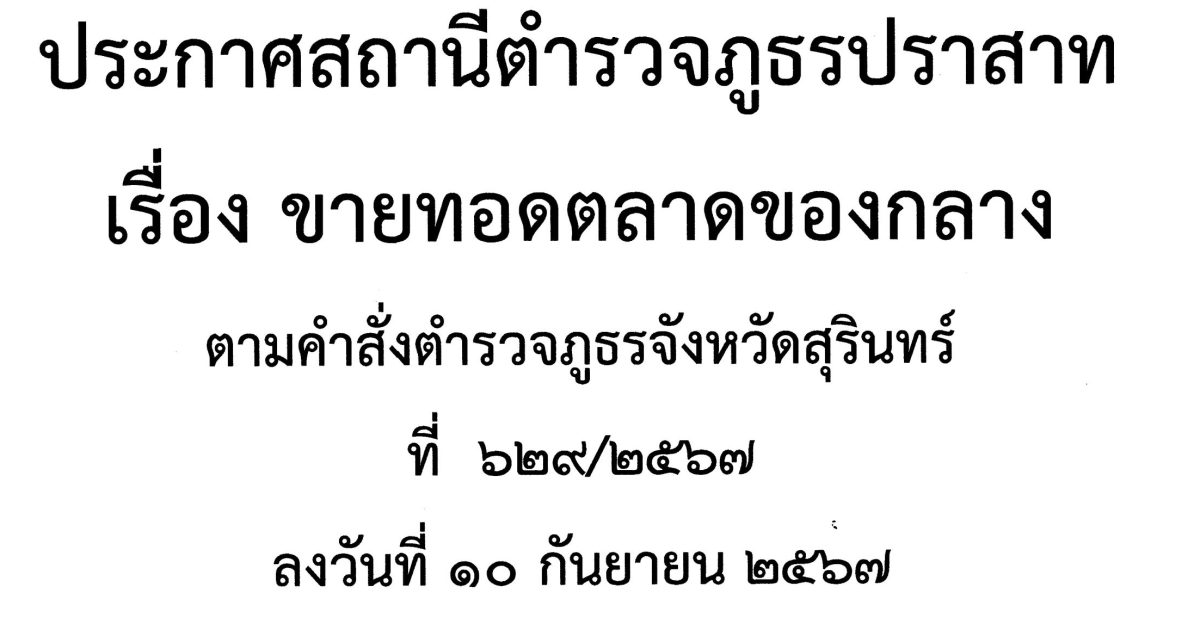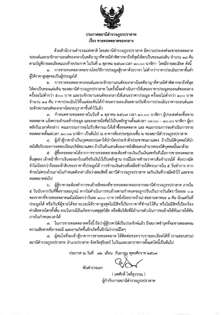 ขายทอดตลาดของกลาง สภ.ปราสาท ภ.จว.สุรินทร์ 12 กันยายน 2567 โดย admin / ข่าวประชาสัมพันธ์ Facebook iconFacebookTwitter iconTwitterLINE iconLine
