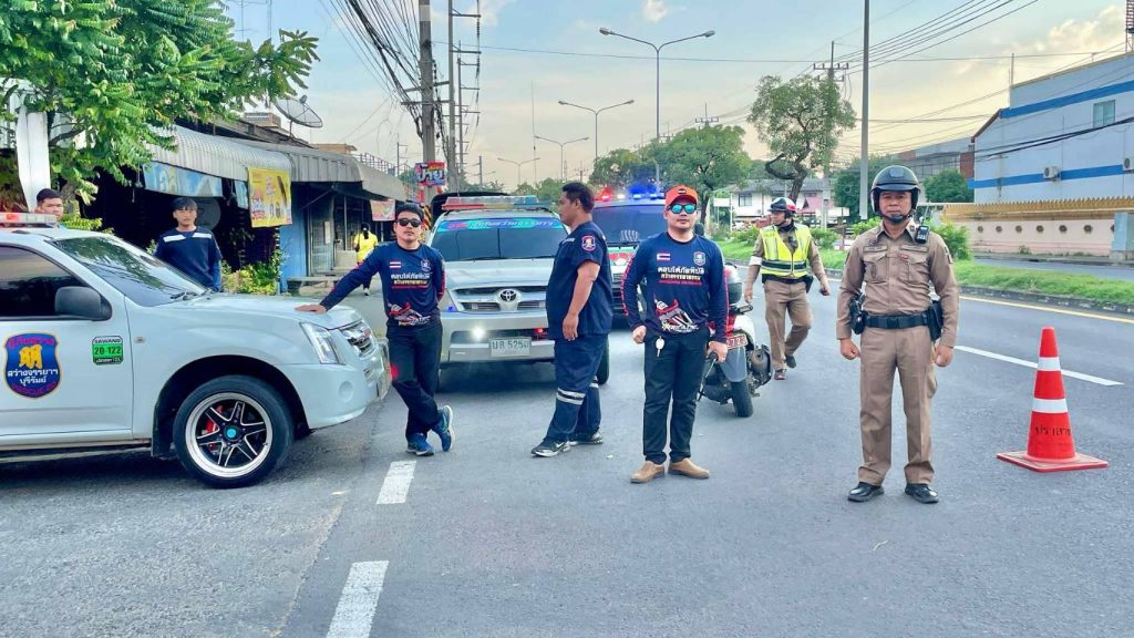 งานจราจร สภ.ปราสาท ภ.จว.สุรินทร์ 4 พฤศจิกายน 2567 โดย admin / ข่าวภารกิจผู้บังคับบัญชา,งานจราจร เรียน ผู้บังคับบัญชาสภ.ปราสาท ภ.จว.สุรินทร์ วันที่ (2 พ.ย. 67 )เวลา15.00-18.00 น. พ.ต.ต.ศุภณัฐ ขยันดี สวป.สภ.ปราสาท ร.ต.อ.ธณกฤช มหาปัญญาเลิศ รองสวป.สภ.ปราสาท(ปราสาท20)ร.ต.อ.วทัญญู ภูสมจิต รองสวป.(ปราสาท60)จนท.สายตรวจรถยนต์/จักรยายนต์/สายตรวจจราจร สภ.ปราสาท จนท.อาสาสมัครหน่วยกู้ภัยในพื้นที่ จนท.แพทย์ฉุกเฉินรพ.ปราสาท ได้ร่วมกันดูแลรักษาความสงบ อำนวยความสะดวกการจราจร ความพร้อมทางการแพทย์ในการจัดกิจกรรมและพิธีเปิดโครงการเดิน วิ่งปั่น ป้องกันอัมพาต ครั้งที่ 10 เฉลิมพระเกียรติพระบาทสมเด็จพระเจ้าอยู่หัว เนื่องในโอกาสพระราชพิธีมหามงคลเฉลิมพระชนมพรรษา 6 รอบ 28 กรกฎาคม 2567 ณ สวนสาธารณหนองกังแอน ต.กังแอน อ.ปราสาท จว.สุรินทร์พร้อมนี้สภ.ปราสาทได้รับมอบเกียรติบัตรขอบคุณจากคณะผู้จัดงาน โดยมี พ.จ.ต.ธวัช พันธุชิน นายอำเภอปราสาท เป็นประธาน เหตุการณ์ทั่วปกติจึงเรียนมาเพื่อโปรดทราบ Facebook iconFacebookTwitter iconTwitterLINE iconLine