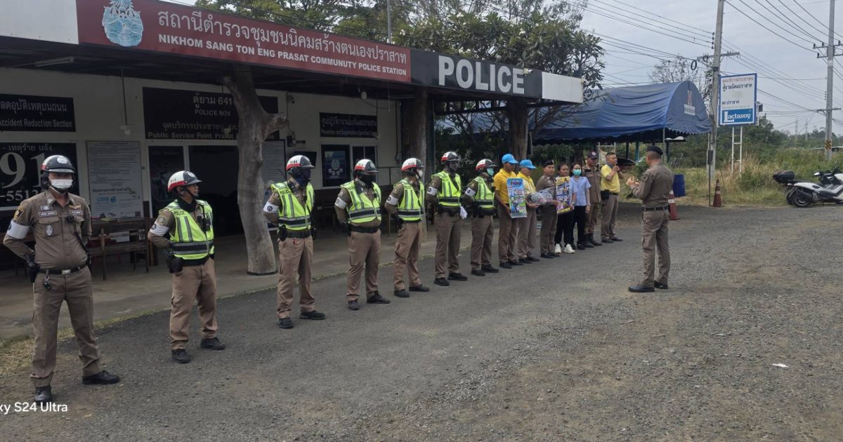 สภ.ปราสาท ขอรายงานว่า วันนี้ (29 ธ.ค. 67) เวลา 10.00 น. พ.ต.อ.ยศศักดิ์ โพธิ์สุวรรณ ผกก.สภ.ปราสาท พร้อมด้วยจิตอาสา สภ.ปราสาท, สายตรวจจราจร, จนท.สาธารณะสุข และชุด ชรบ.ต.ปรือ ร่วมกันอำนวยความสะดวกการจราจร และป้องกันอุบัติเหตุ ในห้วงเทศกาลปีใหม่ พ.ศ.2568 ณ จุดบริการประชาชนตู้ยาม 641 ต.ปรือ อ.ปราสาท จ.สุรินทร์ ซึ่งได้เรียกตรวจรถจักรยานยนต์ พบผู้ไม่สวมหมวกนิรภัย 2 ราย จึงเรียกเข้าจุดตรวจเพื่ออบรมวินัยจราจร ตามโครงการจิตอาสาจราจร รณรงค์การขับขี่ปลอดภัย สวมหมวกนิรภัย เพื่อลดอุบัติเหตุจราจรทางบก ในช่วงเทศกาลปีใหม่ พ.ศ.2568 ผู้ขับขี่สมัครใจเข้ารับอบรมฯ จะนำไปปฏิบัติและถ่ายทอดต่อไป และได้มอบหมวกนิรภัย จำนวน 2 ใบ ให้กับผู้ขับขี่