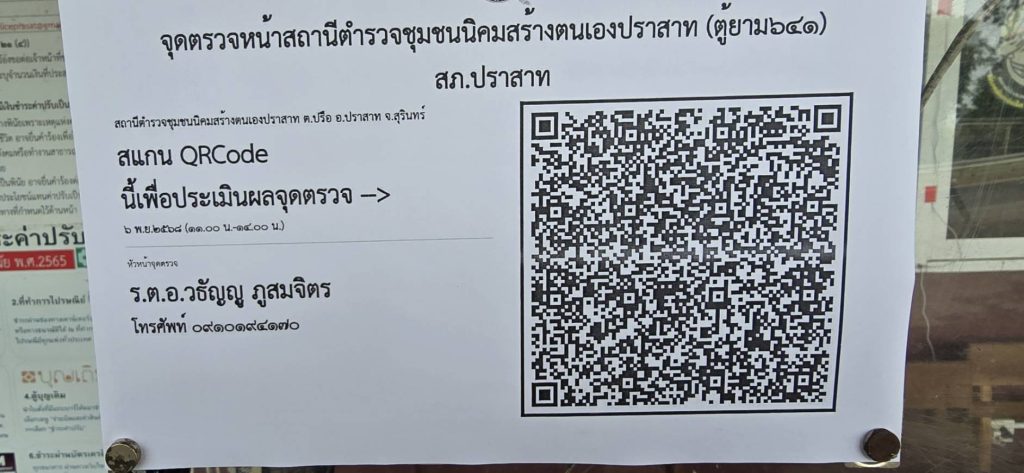 สภ.ปราสาท ขอรายงานการตั้งจุดตรวจกวดขันวินัยจราจร, จุดตรวจวัดระดับแอลกอฮอล์, จุดตรวจป้องกันปราบปรามอาชญากรรม, จุดตรวจจับความเร็วแบบเคลื่อนที่, จุดตรวจวัดระดับมลภาวะ(ควันดำ) ป้องกันอุบัติเหตุ และจุดตรวจสอบคัดกรองบุคคล ยานพาหนะตามเส้นทางต่างๆ ที่จะเดินทางเข้า กทม. เพื่อก่อเหตุ หรือกระทำความผิด