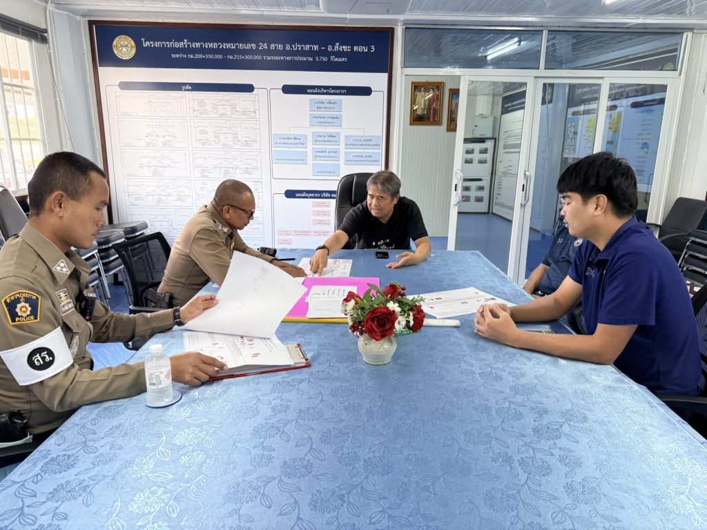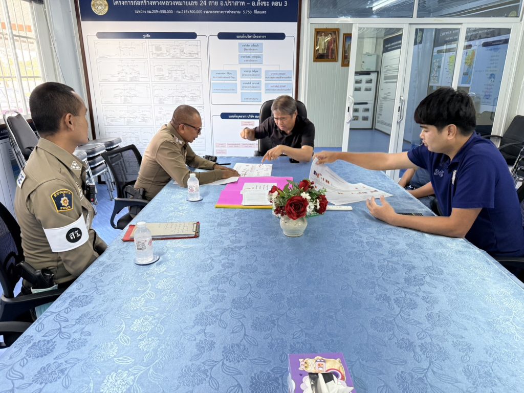 งานจราจร สภ.ปราสาท. ภ.จว.สุรินทร์ 20 มกราคม 2569 โดย admin / ข่าวภารกิจผู้บังคับบัญชา,งานจราจร เรียนผู้บังคับบัญชาสภ.ปราสาท ภ.จว.สุรินทร์วันนี้ 20 ม.ค.69 เวลา 15.00 น.(1) พ.ต.อ.วีณวัฒน์ ศรีแย้มผกก.สภ.ปราสาท(2) ร.ต.อ.วีระศักดิ์ ปฐมชาติรอง สว.จร.ฯ ร้อยเวร 60➡️ ได้เข้าพบผู้ควบคุมโครงการก่อสร้างถนนทางหลวงหมายเลข 24 ระหว่าง กม.ที่192 – กม.ที่215+300 ซึ่งสำนักงานโครงการฯ อยู่ภายในเขตรับผิดชอบของ สภ.ปราสาท จำนวน 3 ตอน ได้ประชุมหารือแนวทางการเตรียมการณ์ช่วงเทศกาลสงกรานต์69 เพื่อไม่ให้เกิดปัญหาด้านการจราจร และแนวทางป้องกันในการเกิดอุบัติเหตุในพื้นที่จึงเรียนมาเพื่อโปรดทราบ Facebook iconFacebookTwitter iconTwitterLINE iconLine