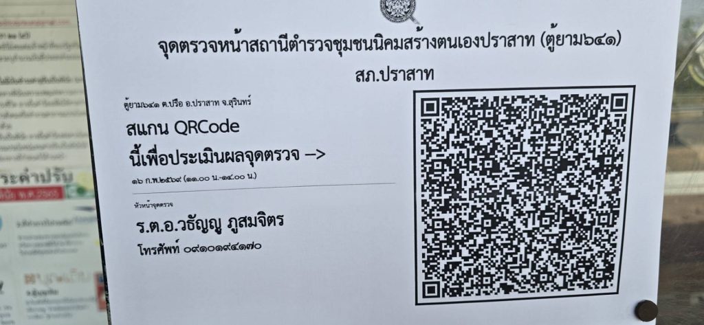 สภ.ปราสาท ขอรายงานการตั้งจุดตรวจกวดขันวินัยจราจร, จุดตรวจวัดระดับแอลกอฮอล์, จุดตรวจป้องกันปราบปรามอาชญากรรม, จุดตรวจจับความเร็วแบบเคลื่อนที่, จุดตรวจวัดระดับมลภาวะ(ควันดำ) ป้องกันอุบัติเหตุ และจุดตรวจสอบคัดกรองบุคคล ยานพาหนะตามเส้นทางต่างๆ ที่จะเดินทางเข้า กทม. เพื่อก่อเหตุ หรือกระทำความผิด