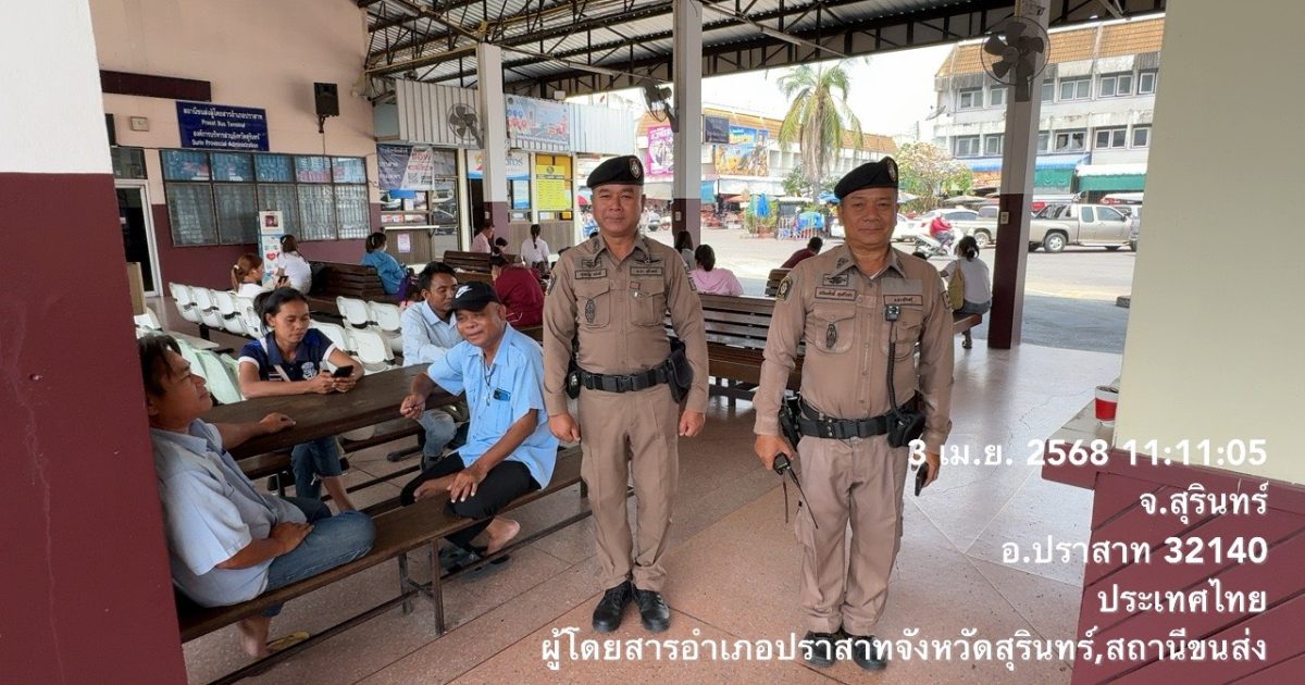 งานป้องกันปราบปราม สภ.ปราสาท ภ.จว.สุรินทร์ 3 เมษายน 2568 โดย admin / ข่าวภารกิจผู้บังคับบัญชา,งานป้องกันปราบปราม เรียนผู้บังคับบัญชา( 3 เมษายน 2568 )พ.ต.ท.ศุภณัฐ ขยันดี สวป.สภ.ปราสาทร.ต.อ.เกรียงศักดิ์ สุทธิโยธา รอง สวป.สภ.ปราสาท ว.4 ป.20 พร้อมโล่ 201 ว.4 เปิดสัญญาณไฟป้องกันเหตุ ว.10 จุดท่องเที่ยว (007) สถานีขนส่งผู้โดยสารปราสาท ต.กังแอน อ.ปราสาท จ.สุรินทร์ เหตุการณ์ทั่วไปปกติจึงเรียนมาเพื่อโปรดทราบ Facebook iconFacebookTwitter iconTwitterLINE iconLine