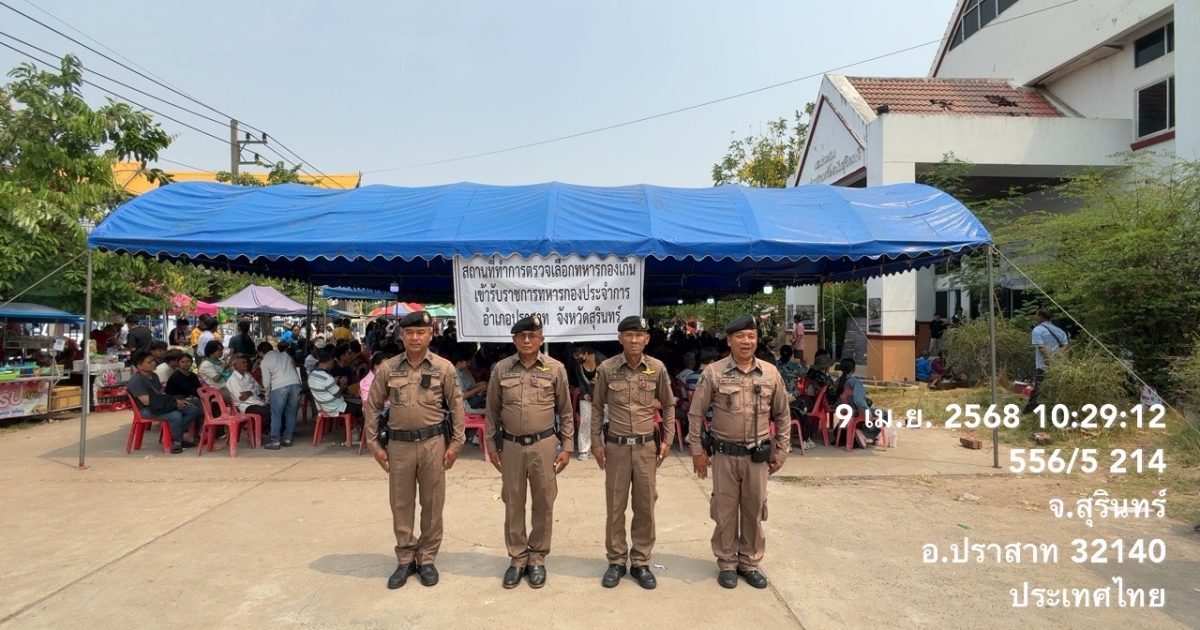 งานป้องกันปราบปราม สภ.ปราสาท ภ.จว.สุรินทร์ 9 เมษายน 2568 โดย admin / ข่าวภารกิจผู้บังคับบัญชา,งานป้องกันปราบปราม เรียนผู้บังคับบัญชา( 9 เมษายน 2568 )พ.ต.ท.ศุภณัฐ ขยันดี สวป.สภ.ปราสาทร.ต.อ.เกรียงศักดิ์ สุทธิโยธา รอง สวป.สภ.ปราสาท ว.4 ป.20 ว.4 หอประชุมอำเภอปราสาท เกณฑ์ทหารประจำปี 2568 เหตุการณ์ทั่วไปปกติ จึงเรียนมาเพื่อโปรดทราบ Facebook iconFacebookTwitter iconTwitterLINE iconLine