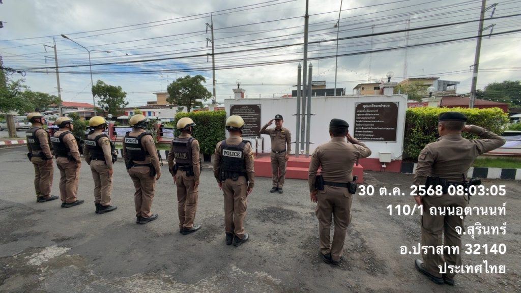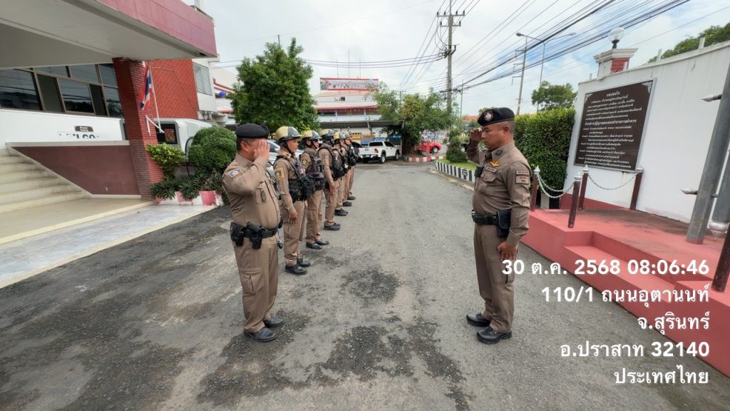 – กำชับ ยกระดับการให้บริการประชาชนด้วยความยิ้มแย้มเเจ่มใส เอาใจใส่ในหน้าที่ตัวเอง ปฏิบัติหน้าที่ตามข้อสั่งการของ ตร. ภ.3 ภ.จว.สุรินทร์