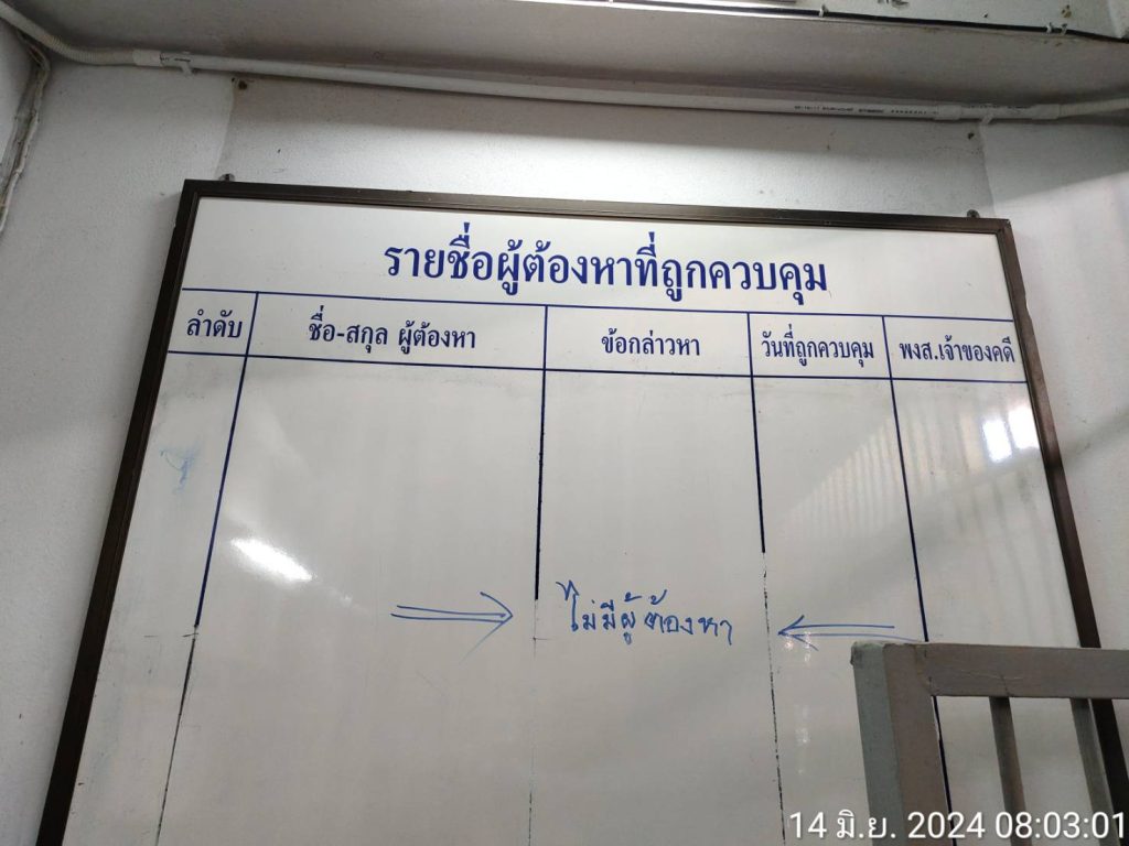งานป้องกันปราบปราม สภ.ปราสาท ภ.จว.สุรินทร์ 14 มิถุนายน 2567 โดย admin / ข่าวภารกิจผู้บังคับบัญชา,งานป้องกันปราบปราม เรียนผู้บังคับบัญชา ( 14 มิถุนายน 2567 ) พ.ต.ต.ศุภณัฐ ขยันดี สวป.สภ.ปราสาท ร.ต.อ.ตรีวุฒิ สุนทรารักษ์ รอง สวป.สภ.ปราสาท (ป.2-0) แต่เวลา ( 08.00-16.00 น.) พบ ร.ต.ต.วิชัย หุ้มกระโทก รอง สว(ป)สภ ปราสาท ว.4 สิบเวร ได้ตรวจห้องควบคุม ไม่มีผู้ต้องหาในความควบคุม ห้องควบคุมสะอาด มั่นคงแข็งแรง จึงเรียนมาเพื่อโปรดทราบ Facebook iconFacebookTwitter iconTwitterLINE iconLine
