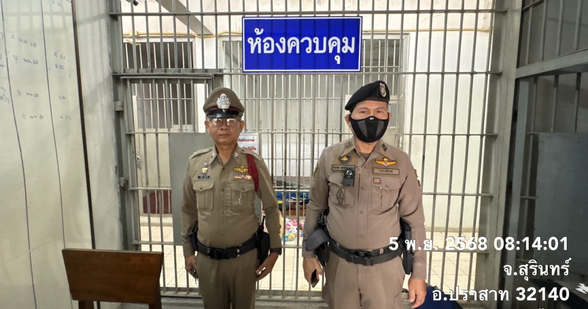 ร.ต.อ.ธณกฤช มหาปัญญาเลิศ รอง สวป.สภ.ปราสาท ว.4 ป.2-0 ว.4 ตรวจห้องควบคุม พบ ร.ต.ต.ชวรัตน์ สุตลาวดี ว.4 สิบเวร มีผู้ต้องหาอยู่ในการควบคุม 5 ราย ห้องควบคุมสะอาด มั่นคงแข็งแรง