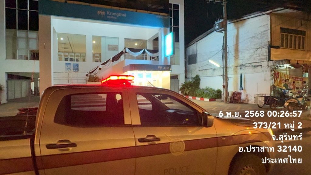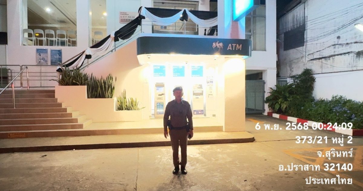 ร.ต.อ.นรินทร์ คำภาบุตร รอง สวป.สภ.ปราสาท ว.4 ป.2-0 พร้อมโล่ 201 ว.4 เปิดสัญญาณไฟป้องกันเหตุ ว.10 ธนาคารกรุงไทย