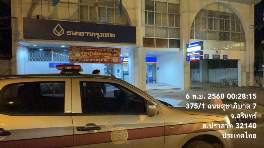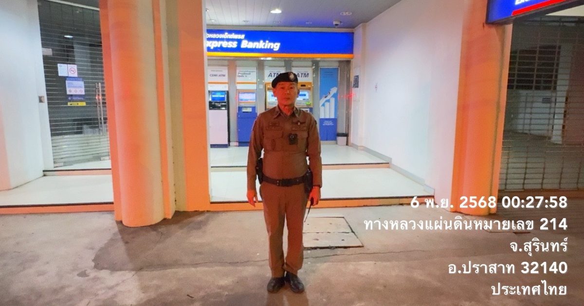 ร.ต.อ.นรินทร์ คำภาบุตร รอง สวป.สภ.ปราสาท ว.4 ป.2-0 พร้อมโล่ 201 ว.4 เปิดสัญญาณไฟป้องกันเหตุ ว.10 ธนาคารกรุงเทพ