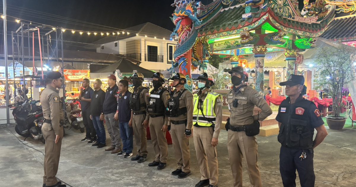 งานป้องกันปราบปราม สภ.ปราสาท ภ.จว.สุรินทร์ 15 พฤศจิกายน 2568 โดย admin / ข่าวภารกิจผู้บังคับบัญชา,งานป้องกันปราบปราม เรียนผู้บังคับบัญชาวันนี้ 15 พ.ย.2568 เวลา 19.00 น.ร.ต.อ.ชาตรี ชูชีวารอง สวป.สภ.ปราสาท ร้อยเวร2-0ปล่อยแถวเจ้าหน้าที่ตำรวจ รักษาความปลอดภัยในงานประเพณีศาลเจ้าพ่อกังแอนประจำปี2568 ณ ศาลเจ้าพ่อกังแอน ต.กังแอน อ.ปราสาท จ.สุรินทร์ จึงเรียนมาเพื่อโปรดทราบ Facebook iconFacebookTwitter iconTwitterLINE iconLine