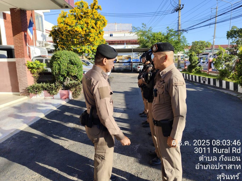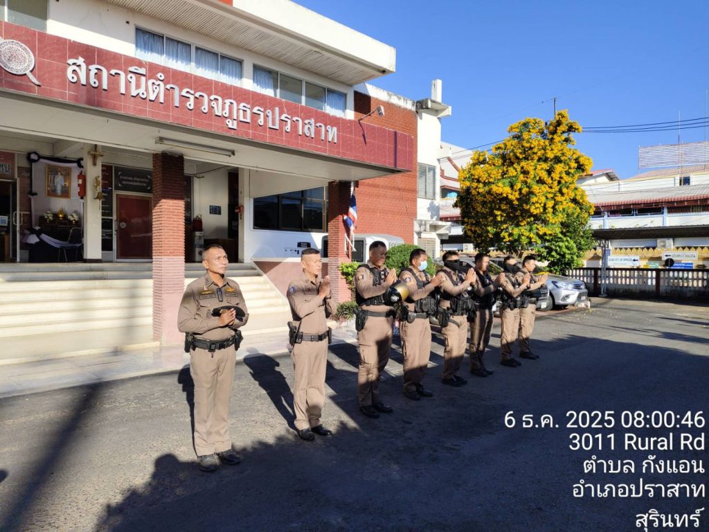 วันนี้(6 ธันวาคม 2568) พ.ต.อ.วีณวัฒน์ ศรีแย้ม ผกก.สภ.ปราสาท ร.ต.อ.นรินทร์ คำภาบุตร รอง สวป.สภ ปราสาท ร้อยเวร 2-0