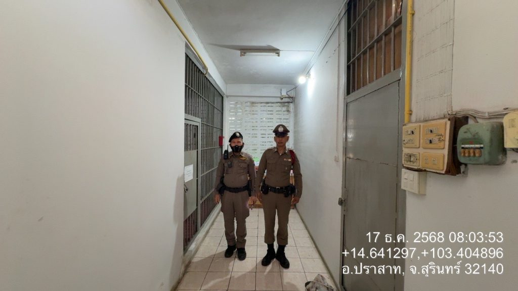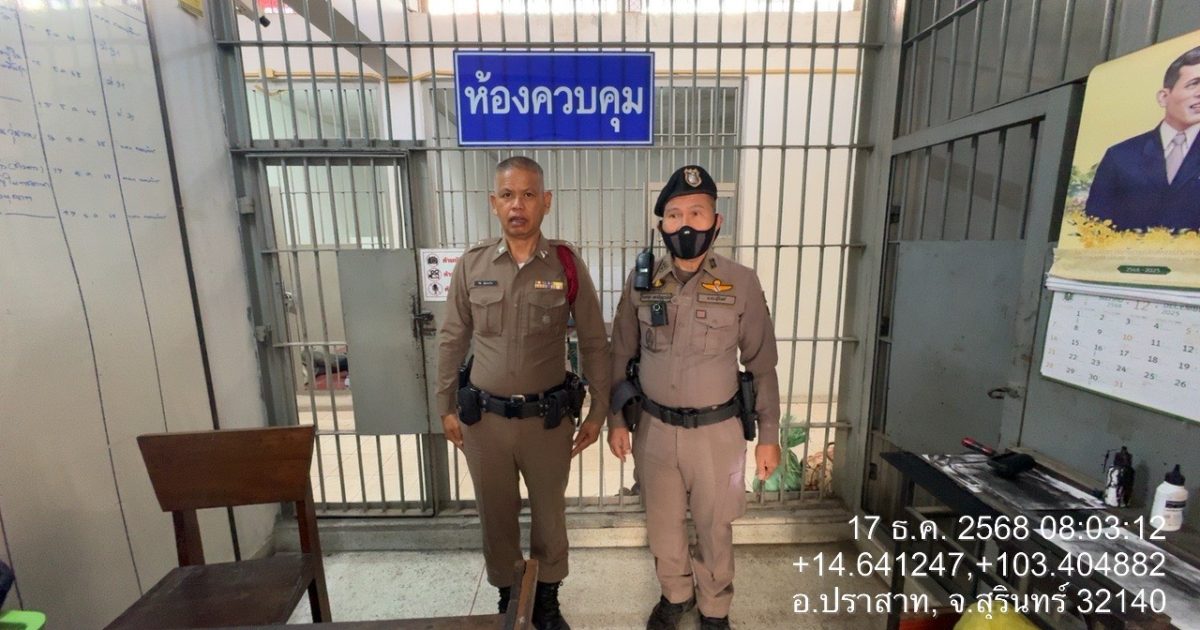 งานป้องกันปราบปราม สภ.ปราสาท. ภ.จว.สุรินทร์ 17 ธันวาคม 2568 โดย admin / ข่าวภารกิจผู้บังคับบัญชา,งานป้องกันปราบปราม เรียนผู้บังคับบัญชา( 17 ธ.ค. 2568 )ร.ต.อ.ธณกฤช มหาปัญญาเลิศ รอง สวป.สภ.ปราสาท ว.4 ป.2-0 ว.4 ตรวจห้องควบคุม พบ ร.ต.ท.วิชัย หุ้มกระโทก ว.4 สิบเวร มีผู้ต้องหาอยู่ในการควบคุม 7 ราย ห้องควบคุมสะอาด มั่นคงแข็งแรงจึงเรียนมาเพื่อโปรดทราบ Facebook iconFacebookTwitter iconTwitterLINE iconLine