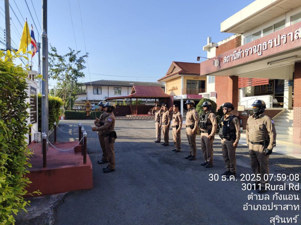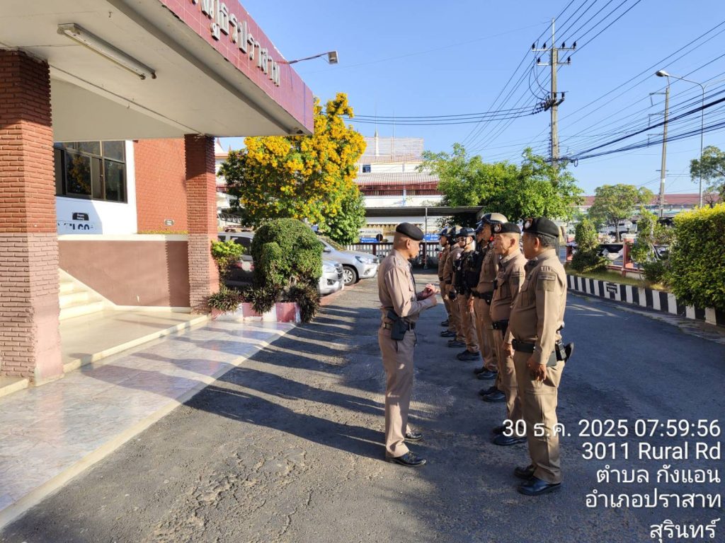 วันนี้(30 ธันวาคม 2568) พ.ต.อ.วีณวัฒน์ ศรีแย้ม ผกก.สภ.ปราสาท ร.ต.อ.นรินทร์ คำภาบุตร รอง สวป.สภ ปราสาท ร้อยเวร 2-0