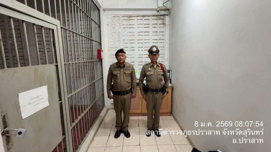 งานป้องกันปราบปราม สภ.ปราสาท. ภ.จว.สุรินทร์ 8 มกราคม 2569 โดย admin / ข่าวภารกิจผู้บังคับบัญชา,งานป้องกันปราบปราม เรียนผู้บังคับบัญชา( 8 มกราคม 2569 )ร.ต.อ.ตรีวุฒิ สุนทรารักษ์ รอง สวป.สภ.ปราสาท ว.4 ป.2-0 ว.4 ตรวจห้องควบคุม พบ ร.ต.ท.ชวรัตน์ สุตลาวดี ว.4 สิบเวร มีผู้ต้องหาอยู่ในการควบคุม 8 ราย ห้องควบคุมสะอาด มั่นคงแข็งแรงจึงเรียนมาเพื่อโปรดทราบ Facebook iconFacebookTwitter iconTwitterLINE iconLine