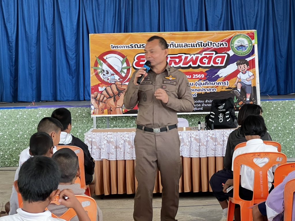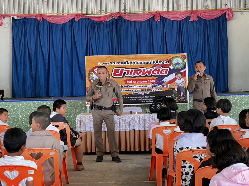 งานป้องกันปราบปราม สภ.ปราสาท. ภ.จว.สุรินทร์ 13 มกราคม 2569 โดย admin / ข่าวภารกิจผู้บังคับบัญชา,งานป้องกันปราบปราม 🚨เรียนผู้บังคับบัญชา🚨🚔สภ.ปราสาท ภ.จว.สุรินทร์🗓️วันนี้ 13 ม.ค.69เวลา 09.30 น.👮♂️พ.ต.อ.วีณวัฒน์ ศรีเเย้ม ผกก.สภ.ปราสาท👮♂️พ.ต.ท.วรวิทย์ พบบุญ สวป.(ชส.)สภ.ปราสาท 🚔 ว.4 เขตพื้นที่เทศบาลกันตวจระมวล ตามโครงการรณรงค์ป้องกันและเเก้ไขปัญหายาเสพติด ณ โรงเรียนกันทราราม (นุ่นศึกษาคาร) ตำบลกันตวจระมวลเหตุการณ์ทั่วไปปกติจึงเรียนมาเพื่อโปรดทราบ Facebook iconFacebookTwitter iconTwitterLINE iconLine