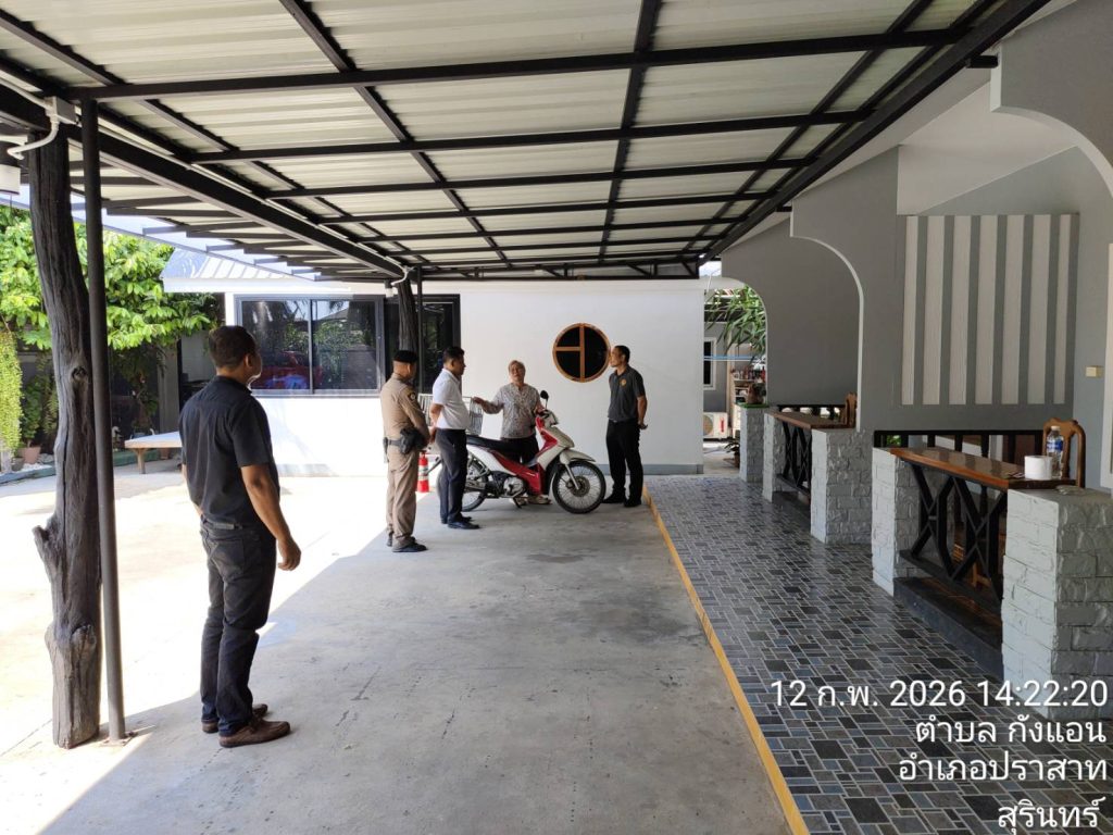 งานป้องกันปราบปราม สภ.ปราสาท. ภ.จว.สุรินทร์ 12 กุมภาพันธ์ 2569 โดย admin / ข่าวภารกิจผู้บังคับบัญชา,งานป้องกันปราบปราม เรียน ผู้บังคับบัญชาวันนี้(12 กุมภาพันธ์ 2569) ร.ต.อ.นรินทร์ คำภาบุตร รอง สวป.สภ ปราสาท พร้อมด้วย กต.ตร.สภ.ปราสาท ว.4 ป.20 ร่วมกับจนท.อำเภอ จนท.อบต. จนท.สาธารณสุข ตรวจสอบม่วนใจ๋รีสอร์ท เหตุการณ์ทั่วไปปกติจึงเรียนมาเพื่อโปรดทราบ Facebook iconFacebookTwitter iconTwitterLINE iconLine