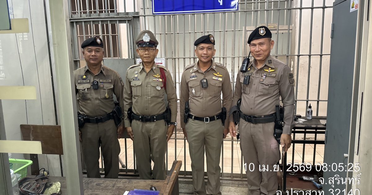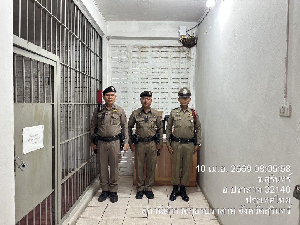 งานป้องกันปราบปราม สภ.ปราสาท. ภ.จว.สุรินทร์ 10 เมษายน 2569 โดย admin / ข่าวภารกิจผู้บังคับบัญชา,งานป้องกันปราบปราม เรียน ผู้บังคับบัญชาวันนี้( 10 เมษายน 2569) พ.ต.อ.วีณวัฒน์ ศรีแย้ม ผกก.สภ.ปราสาทพ.ต.ท.ศุภณัฐ ขยันดี สวป.สภ.ปราสาท ร.ต.อ.ธณกฤช มหาปัญญาเลิศ รอง สวป.สภ ปราสาท ว.4 ป.20 ตรวจห้องควบคุมพบ ร.ต.ต. ชวรัตน์ สุตลาวดีรอง สว(ป)สภ ปราสาท อยู่ปฏิบัติหน้าที่เรียบร้อยมีผู้มีต้องหาในความควบคุม ชาย 2 คน ห้องควบคุมสะอาดแข็งแรง เหตุการณ์ทั่วไปปกติจึงเรียนมาเพื่อโปรดทราบ Facebook iconFacebookTwitter iconTwitterLINE iconLine
