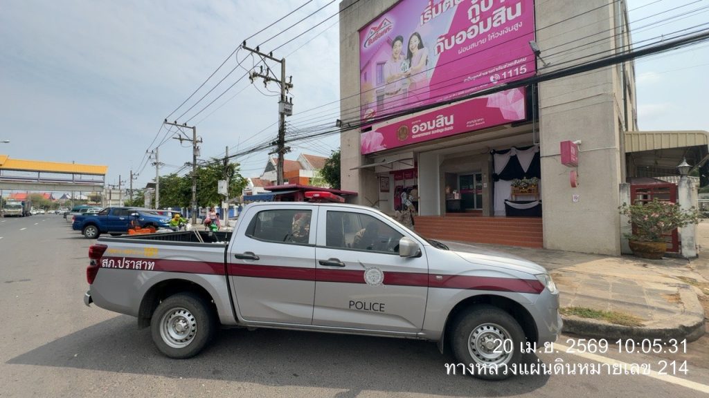 งานป้องกันปราบปราม สภ.ปราสาท. ภ.จว.สุรินทร์ 20 เมษายน 2569 โดย admin / ข่าวภารกิจผู้บังคับบัญชา,งานป้องกันปราบปราม สภ.ปราสาท ภ.จว.สุรินทร์เรียนผู้บังคับบัญชาวันนี้ (20 เมษายน 2569)พ.ต.ท.ศุภณัฐ ขยันดี สวป.สภ.ปราสาทร.ต.อ.ชาตรี ชูชีวา รอง สวป.สภ.ปราสาท (ป.2-0) พร้อม โล่201 ว.4 เปิดสัญญาณไฟป้องกันเหตุ ว.10 ธนาคารออมสิน เหตุการณ์ทั่วไปปกติจึงเรียนมาเพื่อโปรดทราบ Facebook iconFacebookTwitter iconTwitterLINE iconLine