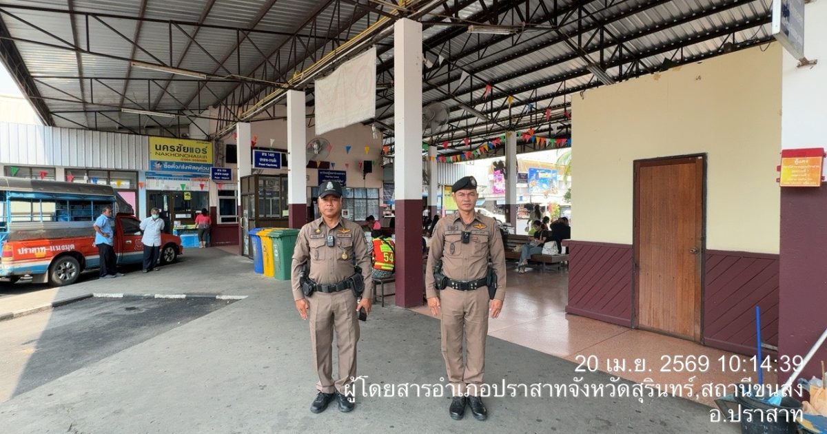 งานป้องกันปราบปราม สภ.ปราสาท. ภ.จว.สุรินทร์ 20 เมษายน 2569 โดย admin / ข่าวภารกิจผู้บังคับบัญชา,งานป้องกันปราบปราม สภ.ปราสาท ภ.จว.สุรินทร์เรียนผู้บังคับบัญชาวันนี้ (20 เมษายน 2569)พ.ต.ท.ศุภณัฐ ขยันดี สวป.สภ.ปราสาทร.ต.อ.ชาตรี ชูชีวา รอง สวป.สภ.ปราสาท (ป.2-0) พร้อม โล่201 ว.4 เปิดสัญญาณไฟป้องกันเหตุ แหล่งท่องเที่ยว 007 ว.10 สถานีขนส่งผู้โดยสารปราสาท เหตุการณ์ทั่วไปปกติจึงเรียนมาเพื่อโปรดทราบ Facebook iconFacebookTwitter iconTwitterLINE iconLine