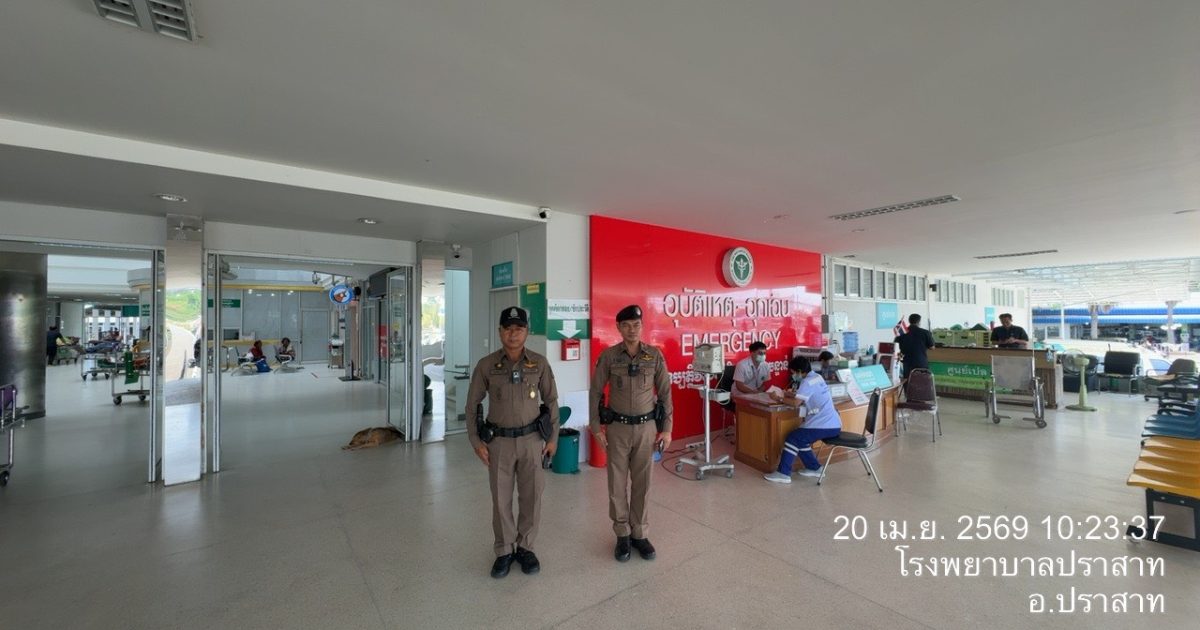 งานป้องกันปราบปราม สภ.ปราสาท. ภ.จว.สุรินทร์ 20 เมษายน 2569 โดย admin / ข่าวภารกิจผู้บังคับบัญชา,งานป้องกันปราบปราม สภ.ปราสาท ภ.จว.สุรินทร์เรียนผู้บังคับบัญชาวันนี้ (20 เมษายน 2569)พ.ต.ท.ศุภณัฐ ขยันดี สวป.สภ.ปราสาทร.ต.อ.ชาตรี ชูชีวา รอง สวป.สภ.ปราสาท (ป.2-0) พร้อม โล่201 ว.4 เปิดสัญญาณไฟป้องกันเหตุ ว.10 โรงพยาบาลปราสาท เหตุการณ์ทั่วไปปกติจึงเรียนมาเพื่อโปรดทราบ Facebook iconFacebookTwitter iconTwitterLINE iconLine