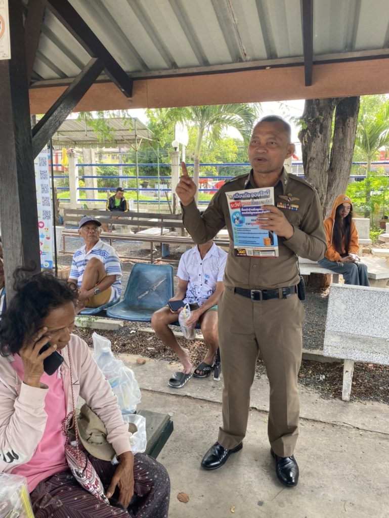 งานป้องกันปราบปราม สภ.ปราสาท ภ.จว.สุรินทร์ 18 กันยายน 2567 โดย admin / ข่าวภารกิจผู้บังคับบัญชา,งานป้องกันปราบปราม เรียนผู้บังคับบัญชาสภ.ปราสาท ภ.จว.สุรินทร์ ขอรายงานการปฏิบัติดังนี้วันนี้(18 กย.67) เวลา 09.30 น.โดยการอำนวยการของ พ.ต.อ.ยศศักดิ์ โพธิ์สุวรรณ ผกก.สภ.ปราสาท มอบหมายให้ พ.ต.ต.วรวิทย์ พบบุญ สวป.(ชส) สภ.ปราสาท ประชาสัมพันธ์แจ้งเตือนภัยออนไลน์ รู้ทันกลโกงของมิจฉาชีพ ให้กับพี่น้องประชาชนที่มาติดต่อราชการและทำธุรกรรมกับสำนักงานที่ดินจังหวัดสุรินทร์(สาขาอำเภอปราสาท)เพื่อเสริมสร้างภูมิคุ้มกันอาชญากรรมทางเทคโนโลยี่ไม่ให้พี่น้องประชาชนตกเป็นเหยื่อของมิจฉาขีพจึงเรียนมาเพื่อโปรดทราบ Facebook iconFacebookTwitter iconTwitterLINE iconLine