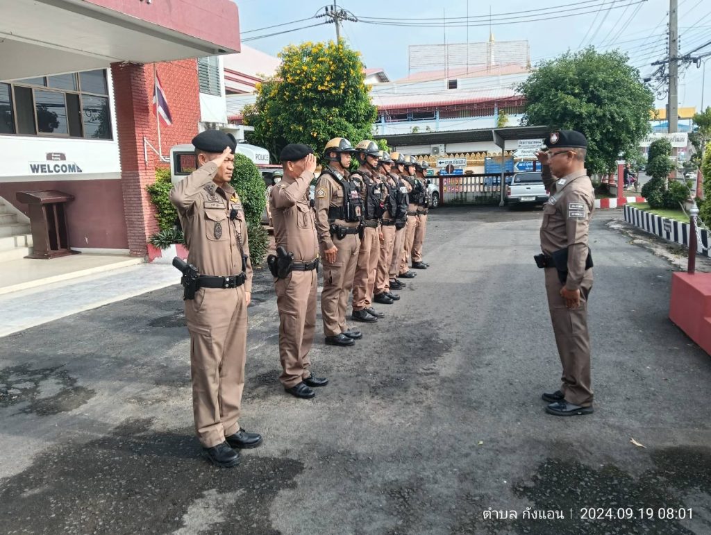 – เรียกแถวสายตรวจรถจักรยานยนต์ ผลัดเข้า- ออก เคารพธงชาติ ตรวจความพร้อมของกำลังพล สายตรวจรถจักรยานยนต์