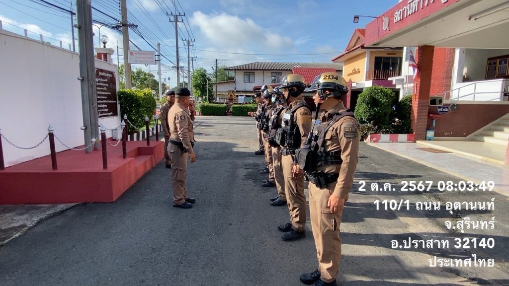 – กำชับ ยกระดับการให้บริการประชาชนด้วยความยิ้มแย้มเเจ่มใส เอาใจใส่ในหน้าที่ตัวเอง ปฏิบัติหน้าที่ตามข้อสั่งการของ ตร. ภ.3 ภ.จว.สุรินทร์