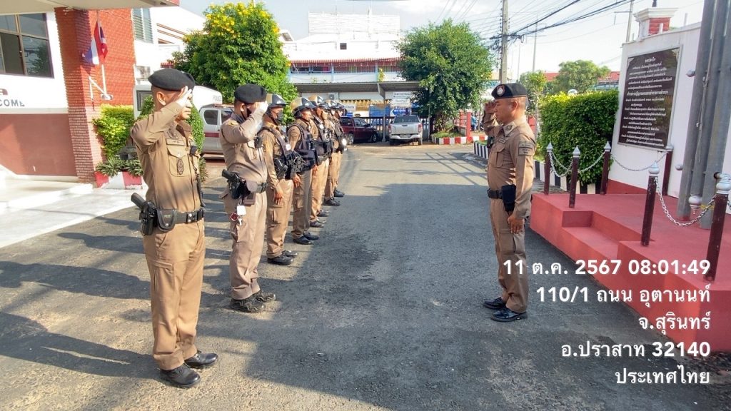 – กำชับ ยกระดับการให้บริการประชาชนด้วยความยิ้มแย้มเเจ่มใส เอาใจใส่ในหน้าที่ตัวเอง ปฏิบัติหน้าที่ตามข้อสั่งการของ ตร. ภ.3 ภ.จว.สุรินทร์