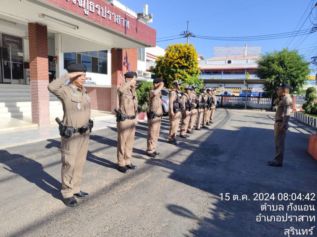 – กำชับ ยกระดับการให้บริการประชาชนด้วยความยิ้มแย้มเเจ่มใส เอาใจใส่ในหน้าที่ตัวเอง ปฏิบัติหน้าที่ตามข้อสั่งการของ ตร. ภ.3 ภ.จว.สุรินทร์