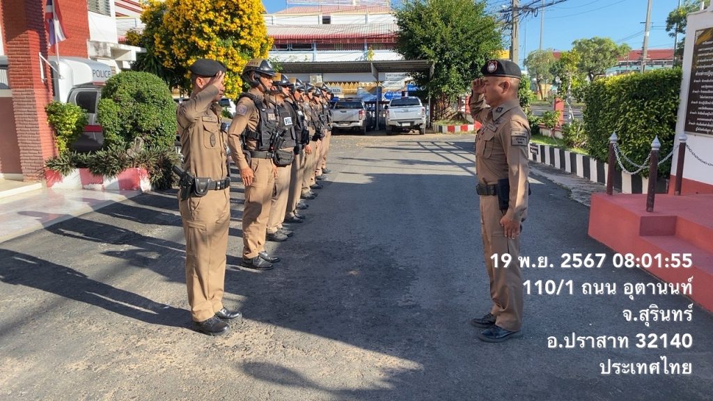 – กำชับ ยกระดับการให้บริการประชาชนด้วยความยิ้มแย้มเเจ่มใส เอาใจใส่ในหน้าที่ตัวเอง ปฏิบัติหน้าที่ตามข้อสั่งการของ ตร. ภ.3 ภ.จว.สุรินทร์