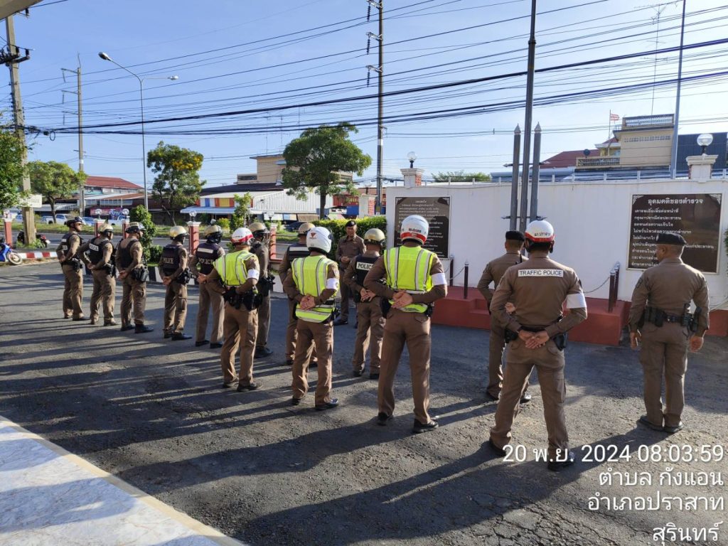 – กำชับ ยกระดับการให้บริการประชาชนด้วยความยิ้มแย้มเเจ่มใส เอาใจใส่ในหน้าที่ตัวเอง ปฏิบัติหน้าที่ตามข้อสั่งการของ ตร. ภ.3 ภ.จว.สุรินทร์