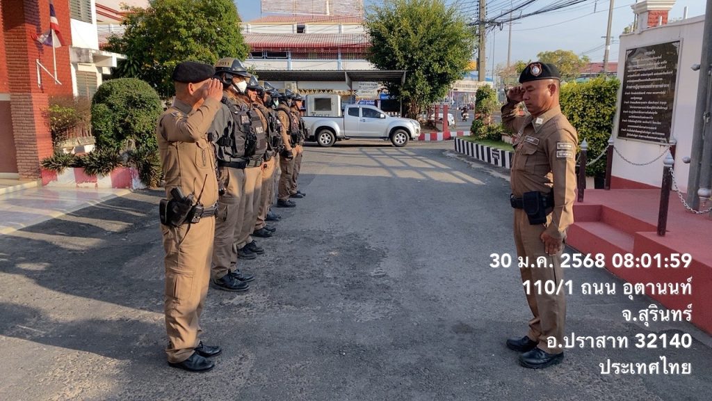 – กำชับ ยกระดับการให้บริการประชาชนด้วยความยิ้มแย้มเเจ่มใส เอาใจใส่ในหน้าที่ตัวเอง ปฏิบัติหน้าที่ตามข้อสั่งการของ ตร. ภ.3 ภ.จว.สุรินทร์