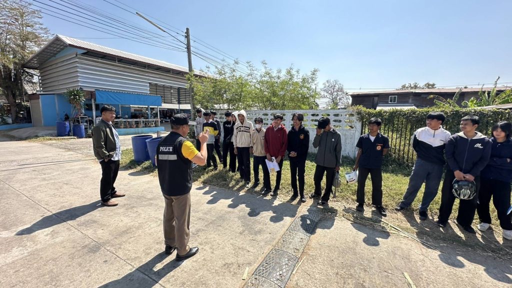 งานป้องกันปราบปราม สภ.ปราสาท ภ.จว.สุรินทร์ 30 มกราคม 2568 โดย admin / ข่าวภารกิจผู้บังคับบัญชา,งานป้องกันปราบปราม เรียน ผู้บังคับบัญชา วันนี้ 30 มกราคม 2568 เวลา 10.00 -12.00 น. ร.ต.ท.วิโรจน์ มีสวัสดิ์ รอง สว.(ป.) สภ.ปราสาท ปบ.สายตรวจตำบลปรือ (ตู้ 641 ) ได้รับการประสานจาก คณะครู อาจารย์ฝ่ายปกครอง วิทยาลัยการอาชีพปราสาท เข้าร่วมในการตักเตือน และบันทึกทัณฑ์บน นักศึกษา ที่ประพฤติตนไม่เหมาะสม และลงสื่อโซเชี่ยล เป็นเหตุให้ ทางวิทยาลัย ได้รับความเสียหาย พร้อมกับออกตรวจสอบ ดูแล ว่ามีนักเรียน นักศึกษา ที่ใช้รถจักรยานยนต์ เดินทางมาวิทยาลัยฯ มีการดัดแปลงสภาพ แต่งท่อไอเสีย และมีอุปกรณ์ส่วนควบรถไม่ถูกต้อง จำนวนหนึ่ง ได้ดำเนินการแจ้งและตักเตือนแล้วให้ แก้ไข ซ่อมแซมให้ถูกต้องตาม พ.ร.บ.จราจร และได้ออกตรวจพื้นที่รอบ วิทยาลัยฯ ตรวจดูช่องทางที่นักศึกษาเข้า ออก ทางลัด ,หอพักนักศึกษาฯ และกำชับให้เข้าเรียนตามตารางเรียนของ วิทยาลัยฯ ต่อไปจึงเรียนมาเพื่อโปรดทราบ Facebook iconFacebookTwitter iconTwitterLINE iconLine