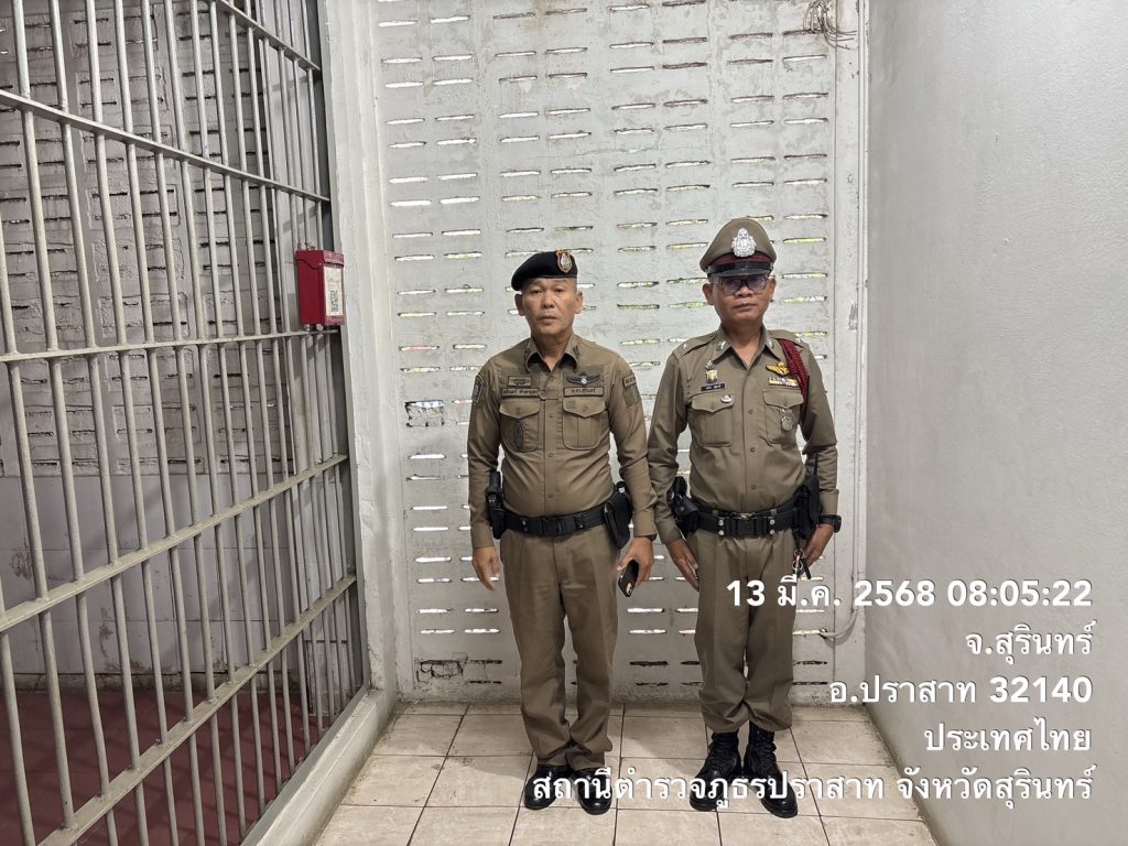 งานป้องกันปราบปราม สภ.ปราสาท ภ.จว.สุรินทร์ 13 มีนาคม 2568 โดย admin / ข่าวภารกิจผู้บังคับบัญชา,งานป้องกันปราบปราม เรียนผู้บังคับบัญชา( 13 มีนาคม 2568 )ร.ต.อ.เรนรินทร์ คำภาบุตรรอง สวป.สภ.ปราสาท ว.4 ป.20 ว.4 ตรวจห้องควบคุม พบ ร.ต.ต.ชวรัตน์ สุตลาวดีว.4 สิบเวร มีผู้ต้องหาอยู่ในการควบคุม 1 ราย ห้องควบคุมสะอาด มั่นคงแข็งแรงจึงเรียนมาเพื่อโปรดทราบ Facebook iconFacebookTwitter iconTwitterLINE iconLine