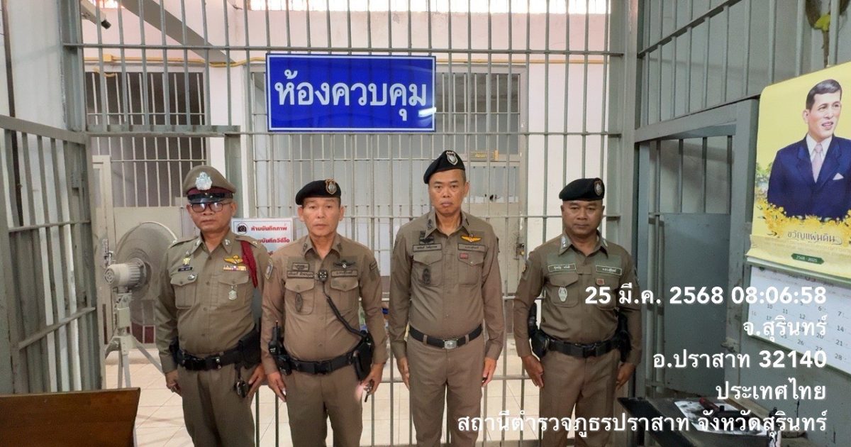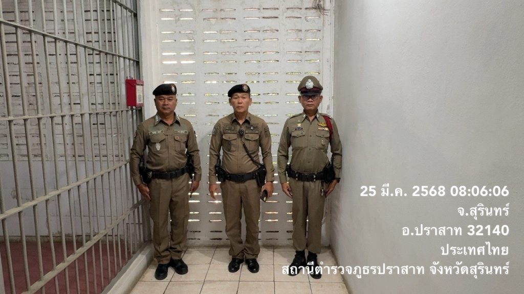 งานป้องกันปราบปราม สภ.ปราสาท ภ.จว.สุรินทร์ 25 มีนาคม 2568 โดย admin / ข่าวภารกิจผู้บังคับบัญชา,งานป้องกันปราบปราม เรียนผู้บังคับบัญชา( 25 มีนาคม 2568 )พ.ต.อ.ยศศักดิ์ โพธิ์สุวรรณ ผกก.สภ.ปราสาทพ.ต.ท.ศุภณัฐ ขยันดี สวป.สภ.ปราสาทร.ต.อ.นรินทร์ คำภาบุตรรอง สวป.สภ.ปราสาท ว.4 ป.20 ว.4 ตรวจห้องควบคุม พบ ร.ต.ต.ชวรัตน์ สุตลาวดีว.4 สิบเวร มีผู้ต้องหาอยู่ในการควบคุม 2 ราย ห้องควบคุมสะอาด มั่นคงแข็งแรงจึงเรียนมาเพื่อโปรดทราบ Facebook iconFacebookTwitter iconTwitterLINE iconLine