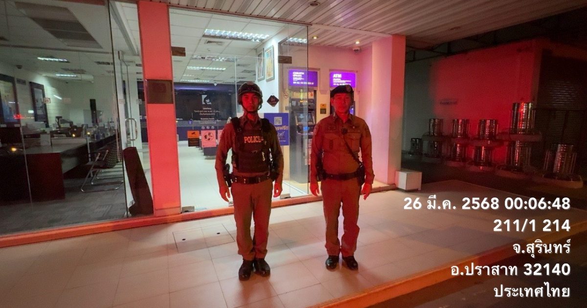 งานป้องกันปราบปราม สภ.ปราสาท ภ.จว.สุรินทร์ 26 มีนาคม 2568 โดย admin / ข่าวภารกิจผู้บังคับบัญชา,งานป้องกันปราบปราม เรียนผู้บังคับบัญชา( 26 มีนาคม 2568 )ร.ต.อ.นรินทร์ คำภาบุตร รอง สวป.สภ.ปราสาท ว.4 ป.20 พร้อมโล่ 201 ว.4 เปิดสัญญาณไฟป้องกันเหตุ ว.10 ธนาคารไทยพาณิชย์ เหตุการณ์ทั่วไปปกติ จึงเรียนมาเพื่อโปรดทราบ Facebook iconFacebookTwitter iconTwitterLINE iconLine
