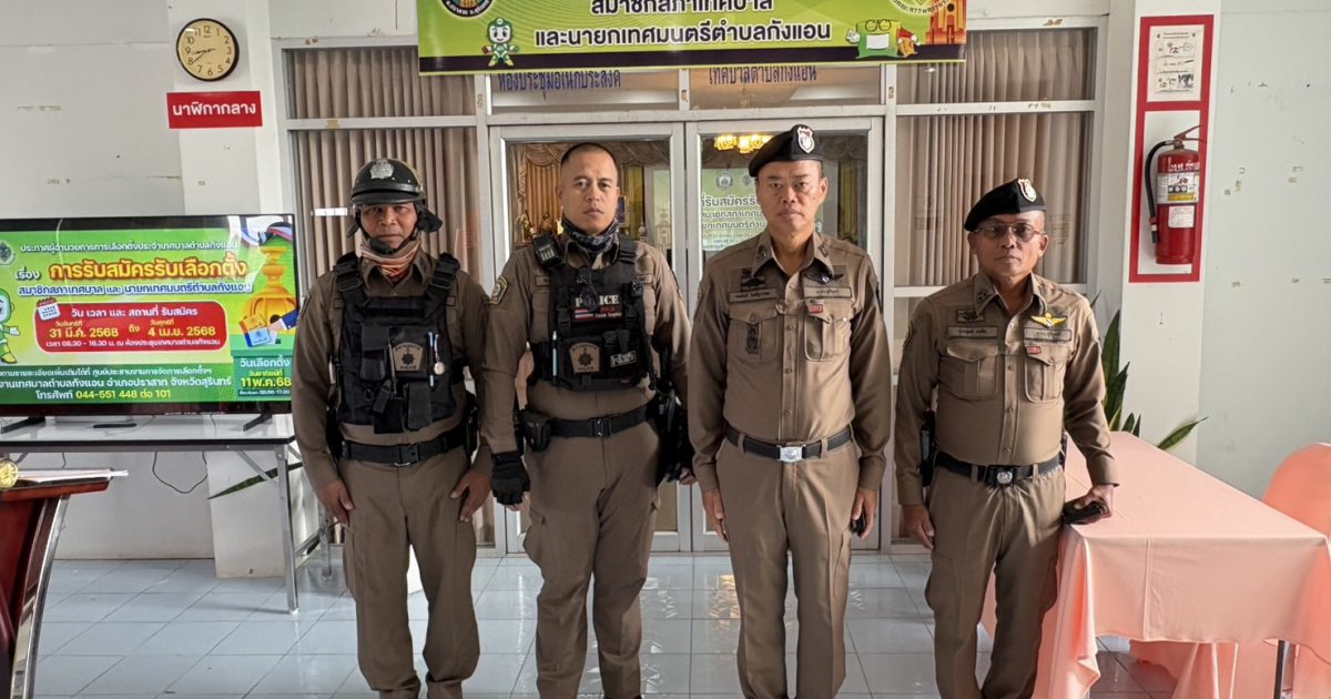 งานป้องกันปราบปราม สภ.ปราสาท ภ.จว.สุรินทร์ 31 มีนาคม 2568 โดย admin / ข่าวภารกิจผู้บังคับบัญชา,งานป้องกันปราบปราม สภ.ปราสาท จว.สุรินทร์เรียน ผู้บังคับบัญชา เพื่อโปรดทราบ วันนี้ (31 มีนาคม 2568 ) พ.ต.อ.ยศศักดิ์ โพธิ์สุวรรณผกก.สภ.ปราสาท ว.4 สถานที่รับสมัครรับเลือกตั้ง สมาชิกสภาเทศบาลและนายกเทศมนตรีตำบลกังแอน ระหว่างวันที่ 31 มีนาคม 2568 ถึง 4 เมษายน 2568 เวลา 08.30 – 16.30 น. ณ ห้องประชุมสำนักงานเทศบาลตำบลกังแอนจึงเรียนมาเพื่อโปรดทราบ Facebook iconFacebookTwitter iconTwitterLINE iconLine