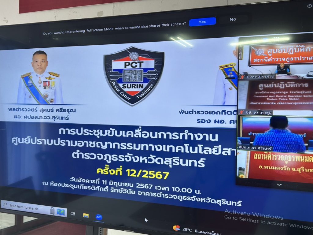 งานสืบสวน สภ.ปราสาท ภ.จว.สุรินทร์ 11 มิถุนายน 2567 โดย admin / ข่าวภารกิจผู้บังคับบัญชา,งานสืบสวน เรียน ผู้บังคับบัญชา วันนี้ ( 11 มิ.ย.67) เวลา 10.00น. ศปก.สภ.ปราสาท ขอรายงานผู้เข้าร่วมประชุมทางไกลผ่านจอภาพ ณ ศปก. สภ.ปราสาท ดังนี้1.พ.ต.ท.ภูเพชร ลีเลิศ รอง ผกก.สส.สภ.ปราสาท เป็นประธานการเฝ้าฟังการประชุม ระบบ VDO Conference ประจำ ศปก.สภ.ปราสาท2.ส.ต.ต.ปฏิพัทธ์ สำราญสุข เจ้าหน้าที่ประจำ ศปก.ฯ โทร.0612905307จึงเรียนมาเพื่อโปรดทราบ Facebook iconFacebookTwitter iconTwitterLINE iconLine
