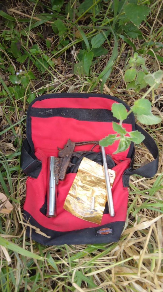 สถานที่ตรวจยึด บริเวณพงหญ้าข้างถนนหมายเลข 24 บ้านกะลัน หมู่ที่ 15 ต.ปรือ อ.ปราสาท จว.สุรินทร์