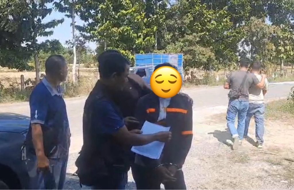 สถานที่จับกุม ริมถนนภายในหมู่บ้านโชค ม.1 ต.ตาเบา อ.ปราสาท จว.สุรินทร์