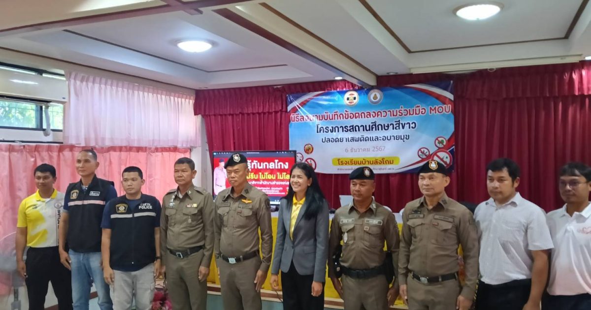 งานสืบสวน สภ.ปราสาท ภ.จว.สุรินทร์ 6 ธันวาคม 2567 โดย admin / ข่าวภารกิจผู้บังคับบัญชา,งานสืบสวน เรียน ผู้บังคับบัญชาสภ.ปราสาทภ.จว.สุรินทร์วันนี้(6ธ.ค.2567)เวลา09.00-10.00น.พ.ต.อ.ยศศักดิ์ โพธิ์สุวรรณ ผกก.สภ.ปราสาท พ.ต.ต.ศุภณัฐ ขยันดี สวป.สภ.ปราสาท ร.ต.อ.เกรียงศักดิ์ สุทธิโยธา รองสวป.ฯ(ปราสาท20)ร่วมกับภาคีเครือข่ายผู้บริหารโรงเรียนในเขตต.หนองหนองใหญ่อ.ปราสาทฯ และนายอุดม ทองคำ นายกองค์การบริหารส่วนตำบลหนองใหญ่ฯร่วมลงนามในบันทึกข้อตกลงความร่วมมือ(MOU)ในการป้องกันและแก้ไขปัญหายาเสพติดในสถานศึกษาอย่างยั่งยืน ระหว่างโรงเรียนบ้านลังโกมกับสภ.ปราสาทและโรงเรียนเครือข่าย ณ ห้องประชุมวิลาวัลย์ โรงเรียนบ้านลังโกม การปฏิบัติเป็นไปด้วยความเรียบร้อย เหตุการณ์ทั่วไปปกติจึงเรียนมาเพื่อโปรดทราบ Facebook iconFacebookTwitter iconTwitterLINE iconLine