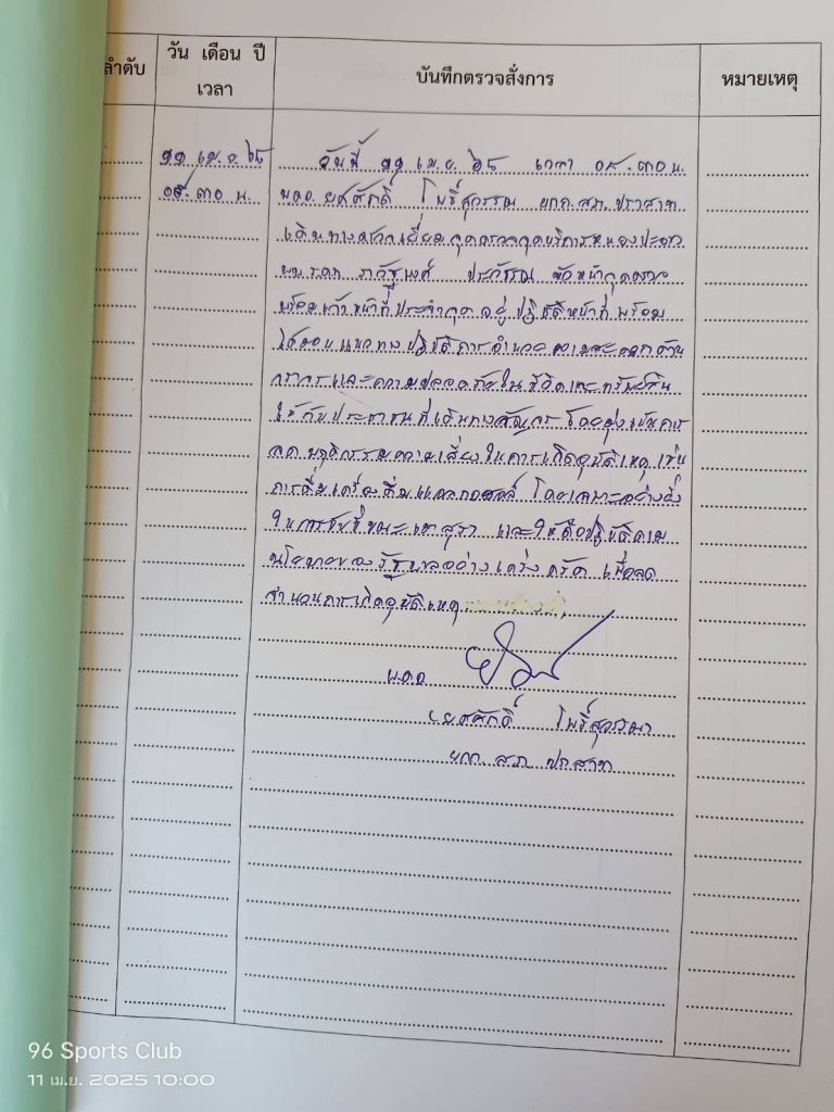 วันนนี้ (11 เม.ย.2568) เวลา 09.30 น. พ.ต.อ.ยศศักดิ์ โพธิ์สุวรรณ ผกก.สภ.ปราสาท ได้เดินทางมาตรวจเยี่ยมจุดตรวจหลักและจุดบริการหนองปะอาว พบร.ต.ท.ภวัฐพงศ์ ประวรรณ พร้อมกำลังพลอยู่ปฏิบัติหน้าที่ และได้มอบแนวทางในการปฏิบัติการอำนวยความสะดวกด้านจราจรและความปลอดภัยในชีวิตทรัพย์สินให้กับประชาชน กำชับให้ถือปฏิบัติตามนโยบายของรัฐบาลอย่างเคร่งครัดเพื่อลดการเกิดอุบัติเหตุ ระหว่างปฏิบัติหน้าที่เหตุการณ์ปกติ