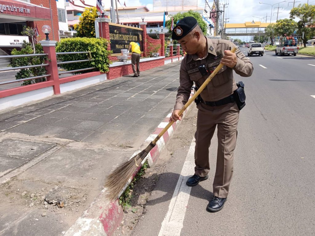 จิตอาอา สภ.ปราสาท ภ.จว.สุรินทร์ 28 สิงหาคม 2567 โดย admin / ข่าวประชาสัมพันธ์,ข่าวกิจกรรม,ข่าวภารกิจผู้บังคับบัญชา,งานอำนวยการ เรียน ผู้บังคับบัญชาสภ.ปราสาท ภ.จว.สุรินทร์รายงานผลการปฏิบัติงานจิตอาสา 1. ประเภทกิจกรรม : จิตอาสาพัฒนาทำความสะอาดและทาสี ตีเส้น สัญญาณจราจร2. วัน เวลา : วันที่ 28 ส.ค. 2567 เวลา 09.00 – 12.00 น.3. สถานที่ : ณ บริเวณสถานีตำรวจภูธรปราสาท 4. ผู้ปฏิบัติ : พ.ต.อ.ยศศักดิ์ โพธิ์สุวรรณ ผกก.สภ.ปราสาท มอบหมายให้ พ.ต.ต.ศุภณัฐ ขยันดี สวป.สภ.ปราสาท, พ.ต.ต.วรวิทย์ พบบุญ สวป.(ชส.)สภ.ปราสาท พร้อมข้าราชการตำรวจจิตอาสาในสังกัด สภ.ปราสาท ร่วมทำกิจกรรมจิตอาสาพัฒนาที่ทำการสถานีตำรวจภูธรปราสาท โดยได้ดำเนินการปรับปรุงภูมิทัศน์ ทำความสะอาดอาคารที่ทำการ จัดเก็บสิ่งของบริเวณด้านหน้าด้านหลังอาคาร และทาสีตีเส้น/สัญญาณจราจรบริเวณทางเท้า(ฟุตบาท) หน้า สภ.ปราสาท ตลอดบริเวณอาคารให้สะอาดเป็นระเบียบเรียบร้อยให้มีความพร้อมในการให้บริการประชาชน5. การปฏิบัติ : ข้าราชการตำรวจจิตอาสา สภ.ปราสาท จำนวน 30 นาย 6. ผลการปฏิบัติ : เป็นไปด้วยความเรียบร้อย 7. ปัญหา/ข้อขัดข้อง : ไม่มีจึงเรียนมาเพื่อโปรดทราบ Facebook iconFacebookTwitter iconTwitterLINE iconLine