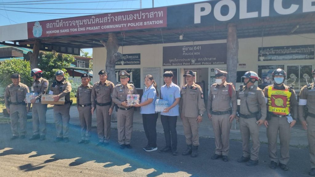 จุดบริการประชาชน ตู้ยาม 641 สภ.ปราสาท 2 มกราคม 2567 โดย admin / ข่าวภารกิจผู้บังคับบัญชา วันที่ (29 ธ.ค.66) เวลา 12.00น. พล.ต.ต.ชาญชัย พงษ์พิชิตกุล รองผบช.ภาค3 ตรวจเยี่ยมจุดบริการประชาชน ตู้ยาม 641 ต.ปรือ อ.ปราสาท พบพ.ต.อ.ยศศักดิ์ โพธิ์สุวรรณผกก.สภ.ปราสาท พ.ต.ท.เทิด ธรรมะ รอง ผกก.ป.สภ.ปราสาท ปฏิบัติหน้าที่ อยู่ พร้อมด้วย เจ้าหน้าฝ่ายปกครอง เจ้าหน้าที่สาธารณะสุข เจ้าหน้าที่ตำรวจ พร้อมทั้งกำชับการปฏิบัติหน้าที่ ในห่วงเทศกาลปีใหม่ 2567 ให้เป็นไปด้วยความเรียบร้อยปลอดภัย และมอบ อาหารว่าง เครื่องดื่ม เพื่อเป็นขวัญกำลังใจในการปฏิบัติหน้าที่ เหตุการณ์ทั่วไปปกติ จึงเรียนมาเพื่อโปรดทราบ Facebook iconFacebookTwitter iconTwitterLINE iconLine