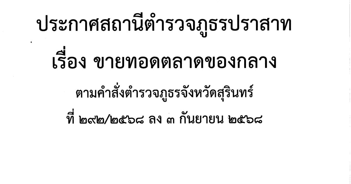 ประกาศสถานีตำรวจภูธรปราสาท ภ.จว.สุรินทร์ 3 กันยายน 2568 โดย admin / ข่าวประชาสัมพันธ์,ไม่มีหมวดหมู่ Facebook iconFacebookTwitter iconTwitterLINE iconLine