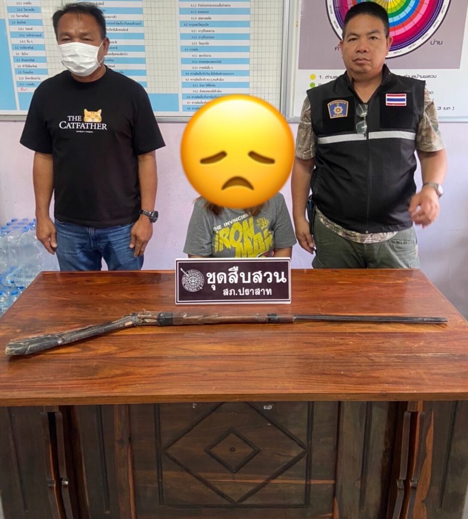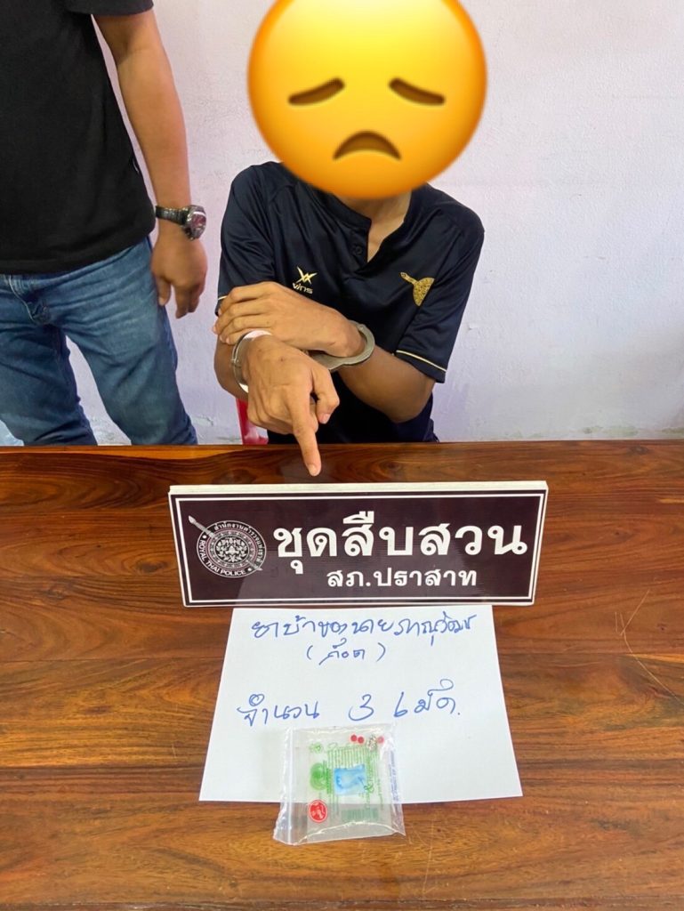 สถานที่จับกุม บริเวณบ้านเลขที่  ต.บ้านไทร อ.ปราสาท จว.สุรินทร์