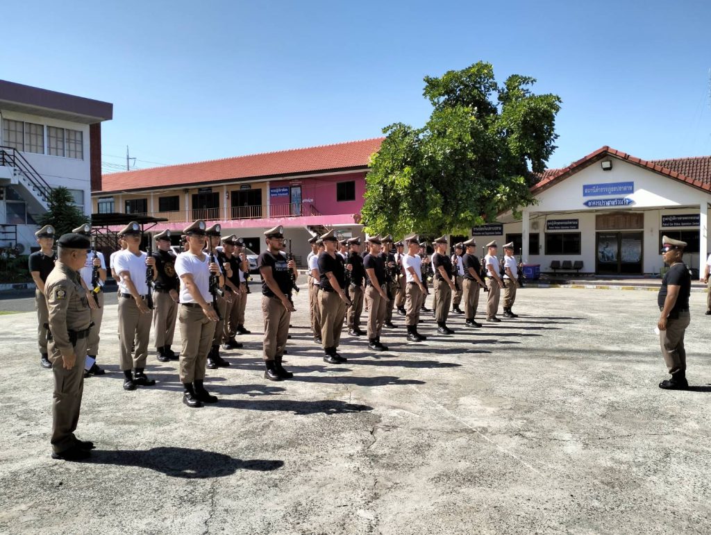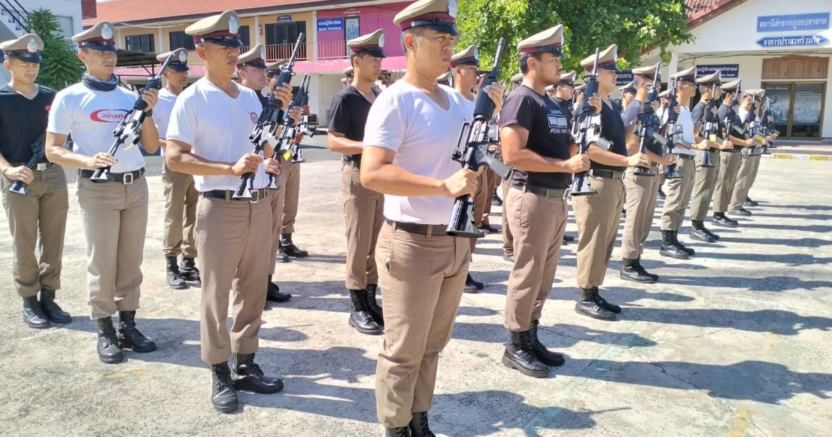 สภ.ปราสาท ภ.จว.สุรินทร์ ซักซ้อมการฝึกท่าบุคคลประกอบอาวุธ