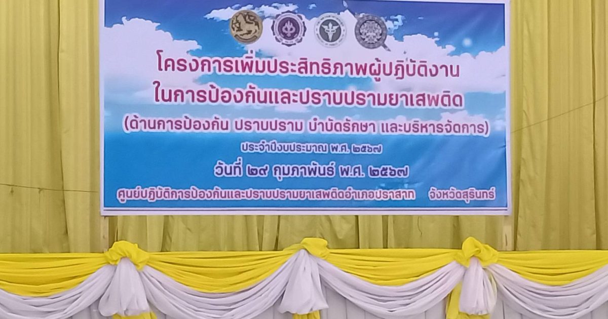 สภ.ปราสาท ภ.จว.สุรินทร์ 29 กุมภาพันธ์ 2567 โดย admin / ข่าวภารกิจผู้บังคับบัญชา เรียน ผู้บังคับบัญชา วันที่(29 ก.พ.67)เวลา 09.00 น. ร.ต.อ.ถนอมชัย พูนกล้า รอง สวป.สภ.ปราสาท และร.ต.อ.ภาณุวิชญ์ ยานศิริ รอง.ธร.สภ.ปราสาท อบรมโครงการเพิ่มประสิทธิภาพผู้ปฎิบัติงานในการป้องกันและปราบปรามยาเสพติด ณ หอประชุมอำเภอปราสาท จึงเรียนมาเพื่อโปรดทราบ.. Facebook iconFacebookTwitter iconTwitterLINE iconLine