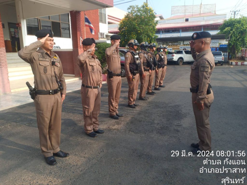 – กำชับ ยกระดับการให้บริการประชาชนด้วยความยิ้มแย้มเเจ่มใส เอาใจใส่ในหน้าที่ตัวเอง ปฏิบัติหน้าที่ตามข้อสั่งการของ ตร. ภ.3 ภ.จว.สุรินทร์