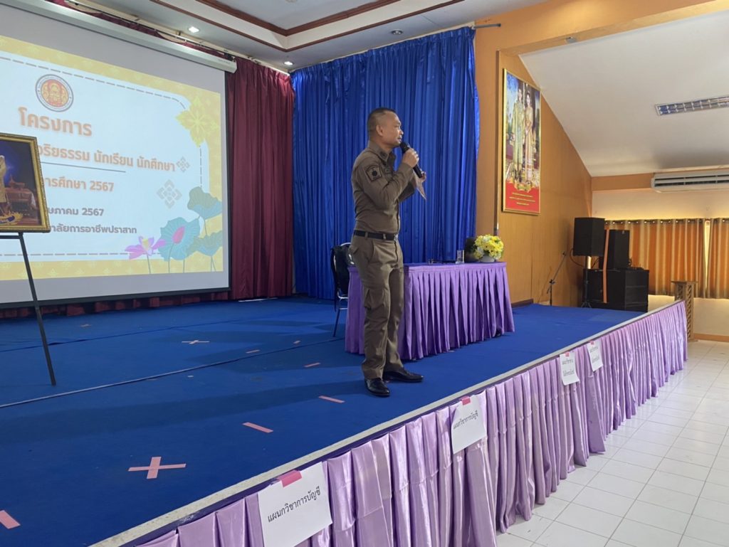 สภ.ปราสาท ภ.จว.สุรินทร์ 9 พฤษภาคม 2567 โดย admin / ข่าวภารกิจผู้บังคับบัญชา,งานป้องกันปราบปราม เรียน ผู้บังคับบัญชา สภ.ปราสาท ภ.จว.สุรินทร์(วันนี้ 9 พฤษภาคม 2567) เวลา 14.30 น. ภายใต้การอำนวยการของ พ.ต.อ.ยศศักดิ์ โพธิ์สุวรรณ ผกก.สภ.ปราสาท มอบหมายให้ พ.ต.ต.วรวิทย์ พบบุญ สวป.(ชส.)สภ.ปราสาทส.เป็นวิทยากรให้ความรู้ข้อกฎหมาย การกระทำที่กฎหมายกำหนดเป็นความผิด การประชาสัมพันธ์แจ้งเตือนภัย ออนไลน์ รู้ทันกลโกงมิจฉาชีพ ให้แก่นักเรียน นักศึกษา ระดับ ปวช.1 และนักศึกษาระดับ ปวส.1.ปีการศึกษา 2567 ของวิทยาลัยการอาชีพอำเภอปราสาท ณ.หอประชุมวิทยาลัยการอาชีพอำเภอปราสาท ต.ปรือ อ.ปราสาท จ.สุรินทร์ เหตุการณ์ปกติจึงเรียนมาเพื่อโปรดทราบ Facebook iconFacebookTwitter iconTwitterLINE iconLine